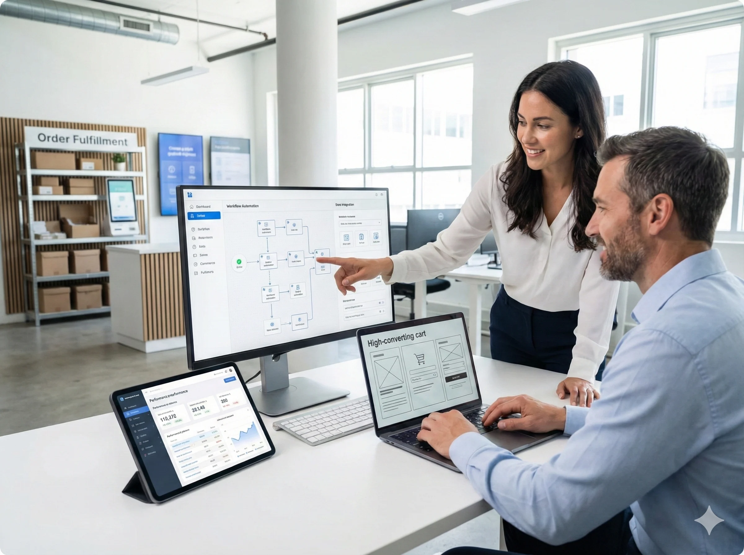 We deliver robust, scalable development on Shopify and Shopify Plus. This includes mobile-first themes, essential speed enhancements, and custom logic via Shopify Functions to ensure stability under peak traffic.
